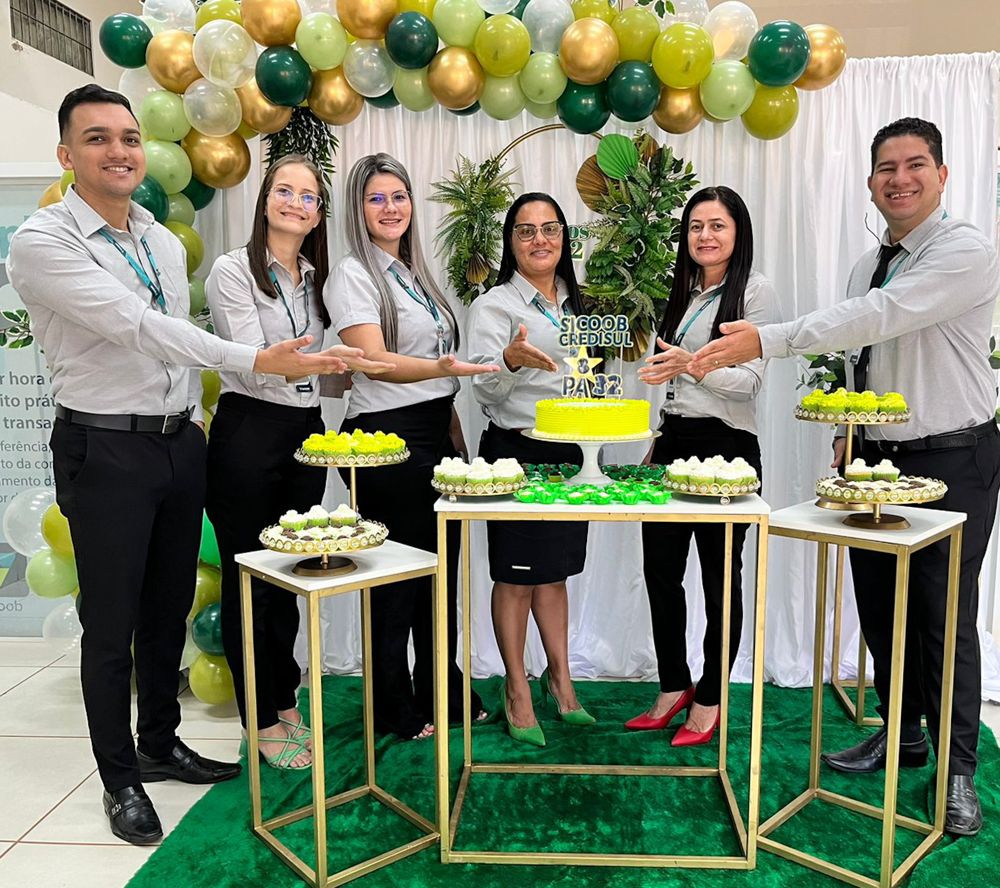 Para a comemoração, a equipe, liderada pelo gerente de agência Edson Reis, recebeu os cooperados, o prefeito Moisés Carvalho, a presidente da Câmara Municipal, Rose Lopes, o padre Alex Sandro Reis e o cooperado e proprietário do prédio da agência, Nadir Luiz Marcon.