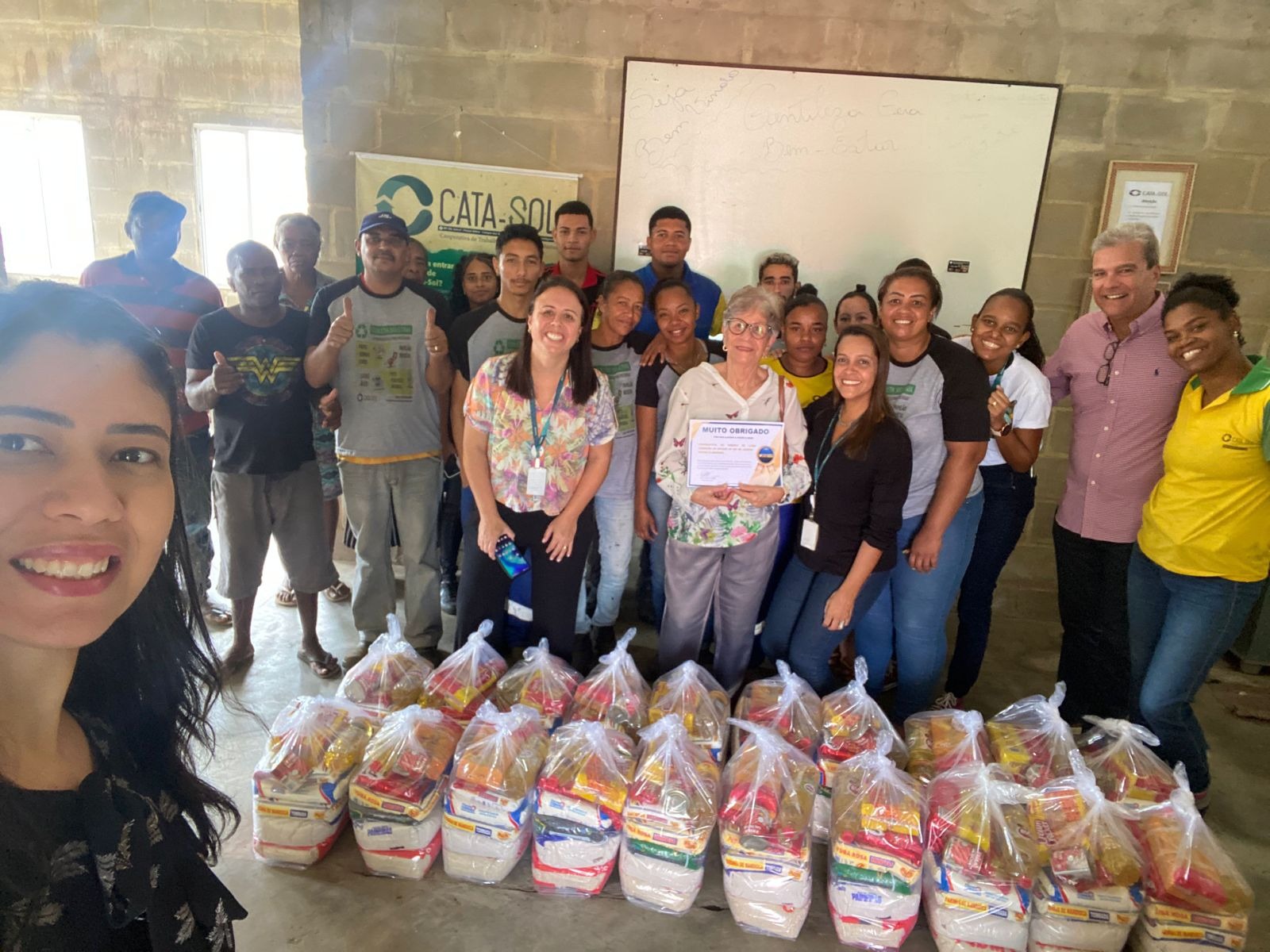 Integrantes do Sicoob Fluminense e representantes do Projeto Socioeducativo Formadores do Bem organizaram em conjunto, na quinta-feira, três de agosto, uma ação para a entrega de 20 cestas básicas para os associados da cooperativa Cata Sol, de Campos dos Goytacazes.