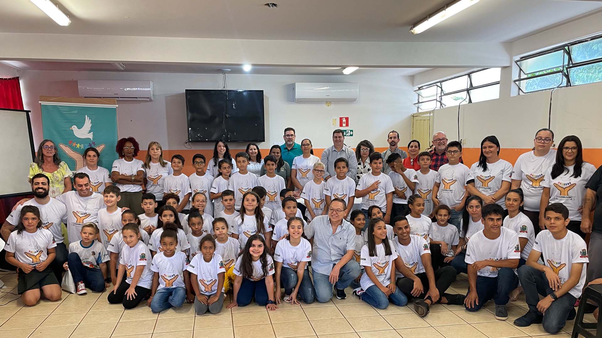 O evento foi prestigiado pelas crianças, por representantes da escola, além do presidente do conselho do Sicoob Metropolitano, Luiz Ajita, o prefeito Edenilson Aparecido Miliossi e outras autoridades da área da educação do município.