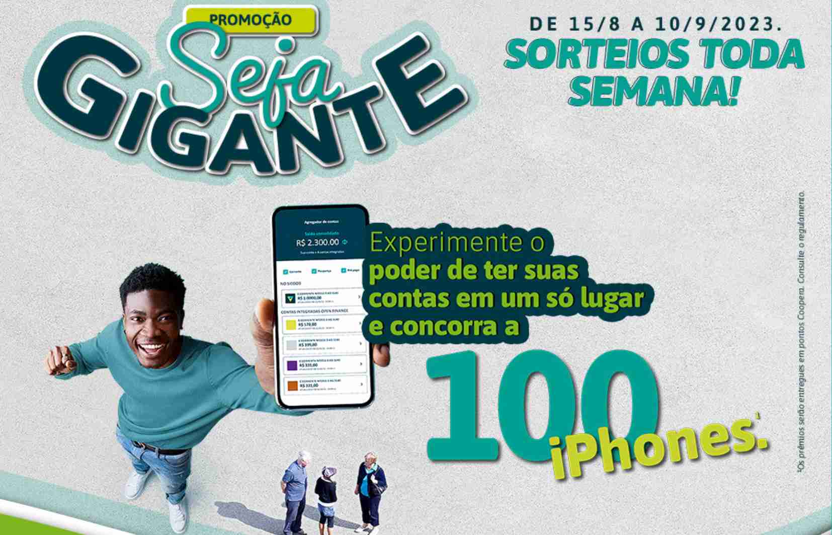 A campanha Seja Gigante do Sicoob é mais um meio facilitador para a vida do associado, pois é um gerenciador pessoal, que integra as vantagens e possibilidades do Open Finance, onde você pode reunir todas as suas contas bancárias. Disponível dentro do App Sicoob, o Agregador Financeiro permite que você centralize sua vida financeira e tenha uma visão completa de contas e saldos, tudo 100% gratuito e seguro.