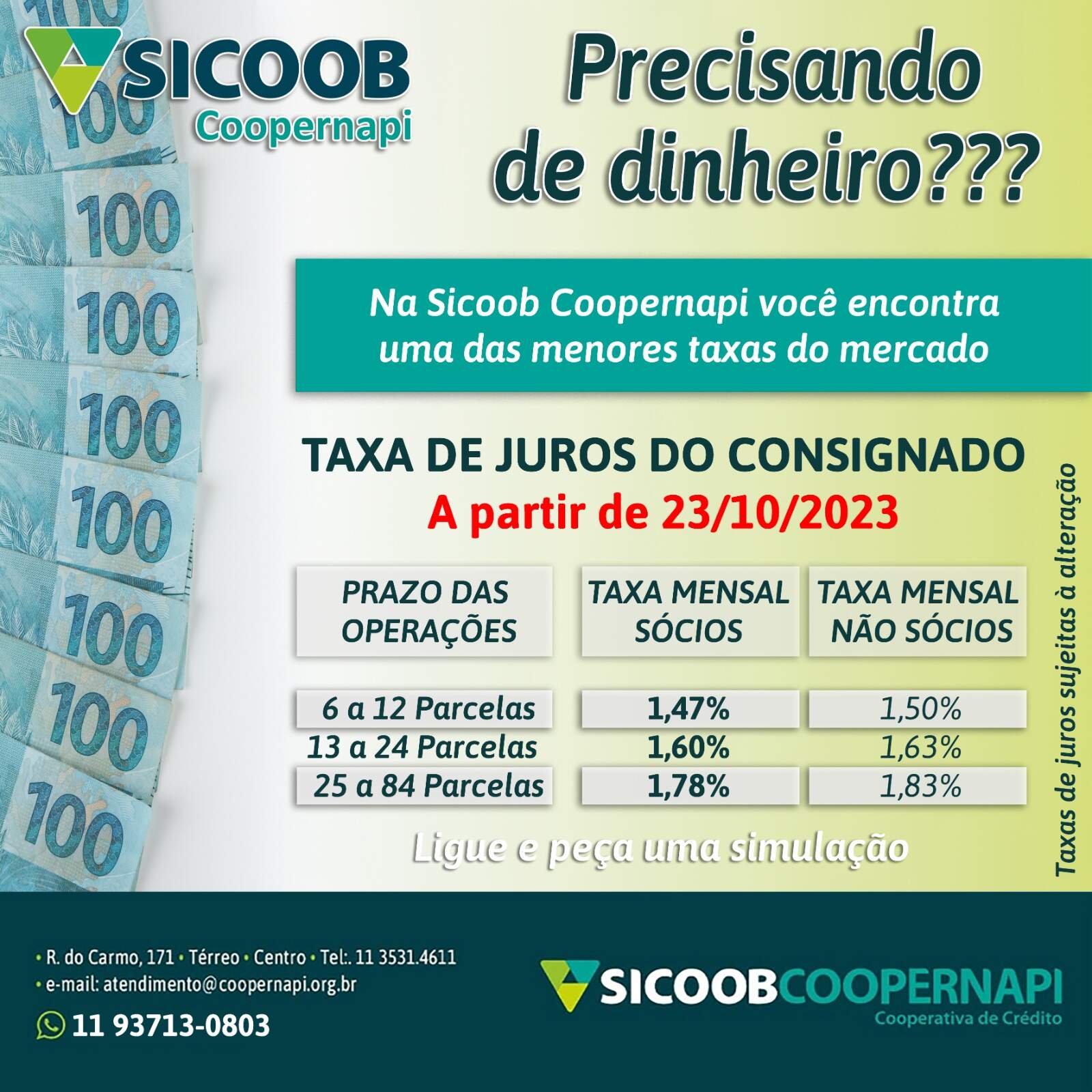 TAXAS A PARTIR DE 1,47% | Na Sicoob Coopernapi você encontra uma das menores taxas de juros.