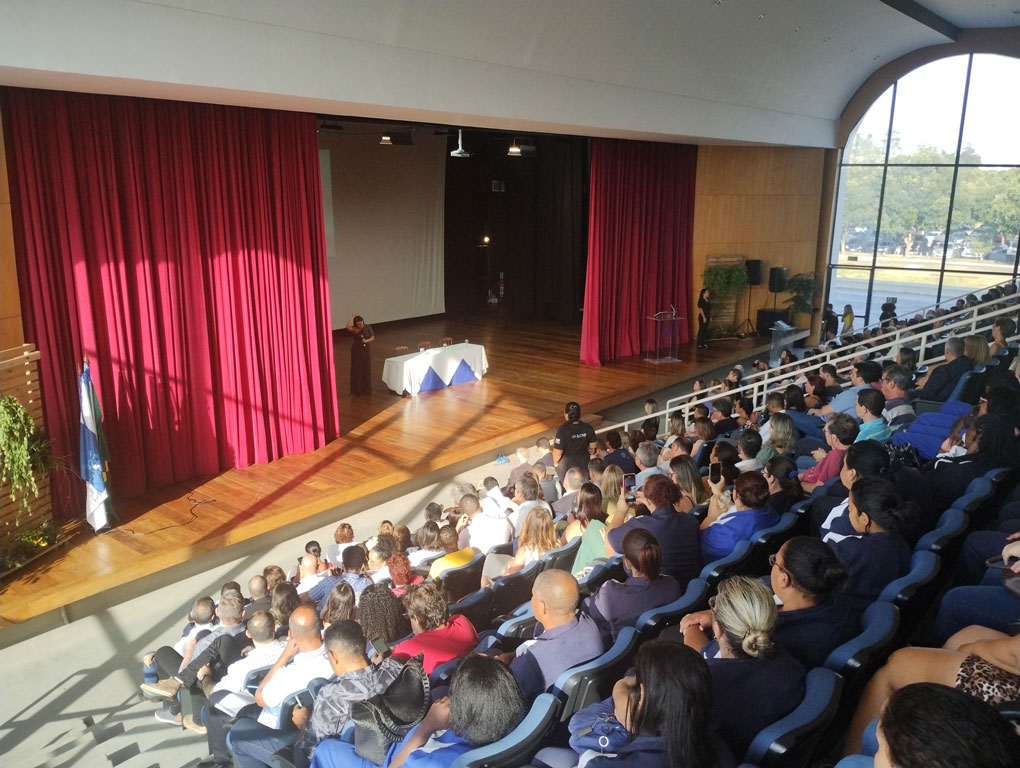 Além da parte institucional, a solenidade contou com apresentação musical e falas das autoridades. A gestão da reitora e do vice-reitor eleitos vai compreender o período de 2024 a 2027.