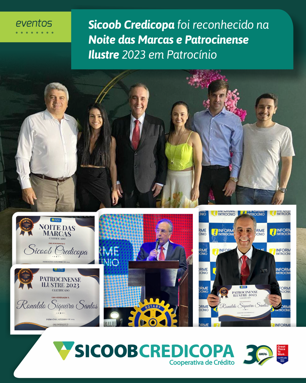 Sicoob Credicopa foi reconhecido na Noite das Marcas e Patrocinense Ilustre 2023 em Patrocínio - Nacional