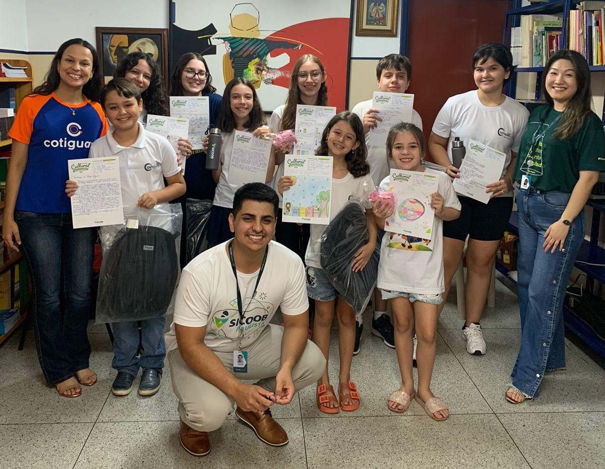 A cerimônia de premiação, iniciada em novembro em cada escola, transformou os corredores em palcos de celebração. Mochilas, squeezes e cofrinhos Sicoob foram entregues aos vencedores, simbolizando não apenas o reconhecimento, mas também o incentivo à cooperação e à educação financeira desde cedo.