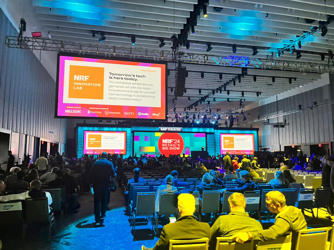 Segundo Carlos, a abertura da NRF, com a participação dos CEOs da Walmart, Levis e FedEx, ressaltou o papel crucial do comércio eletrônico e da integração de inteligência artificial e