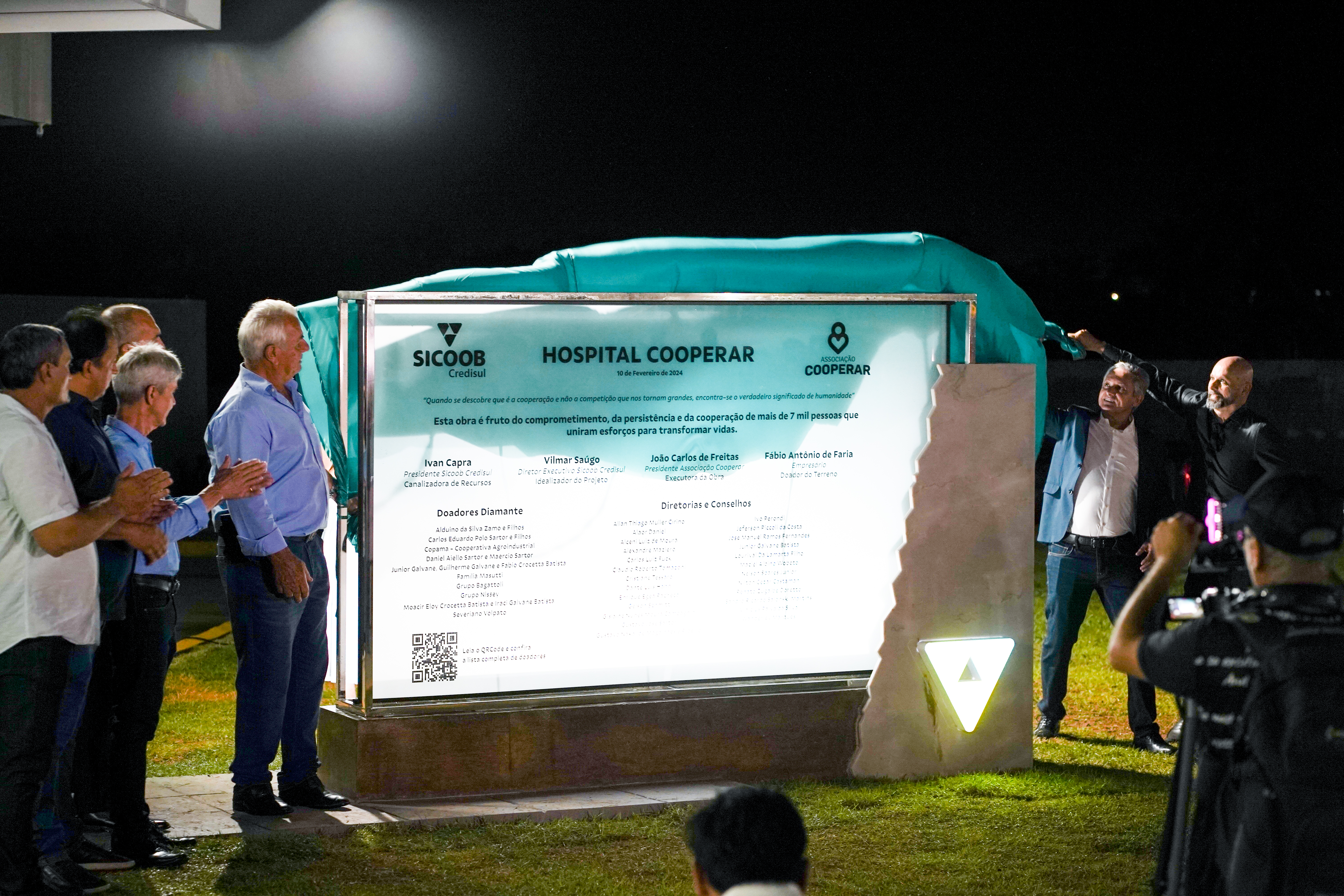 Na ocasião foi feito o descerramento da placa que eterniza os doadores do projeto, nela está disponível um QR Code que direciona ao site com informações do Hospital Cooperar. A cerimônia contou com a benção do pastor Francisco Pedro Stédile e do Frei Carlos Antônio Rodrigues da Silva. Para encerrar a noite de celebração, o público desfrutou de um espetacular show piromusical.