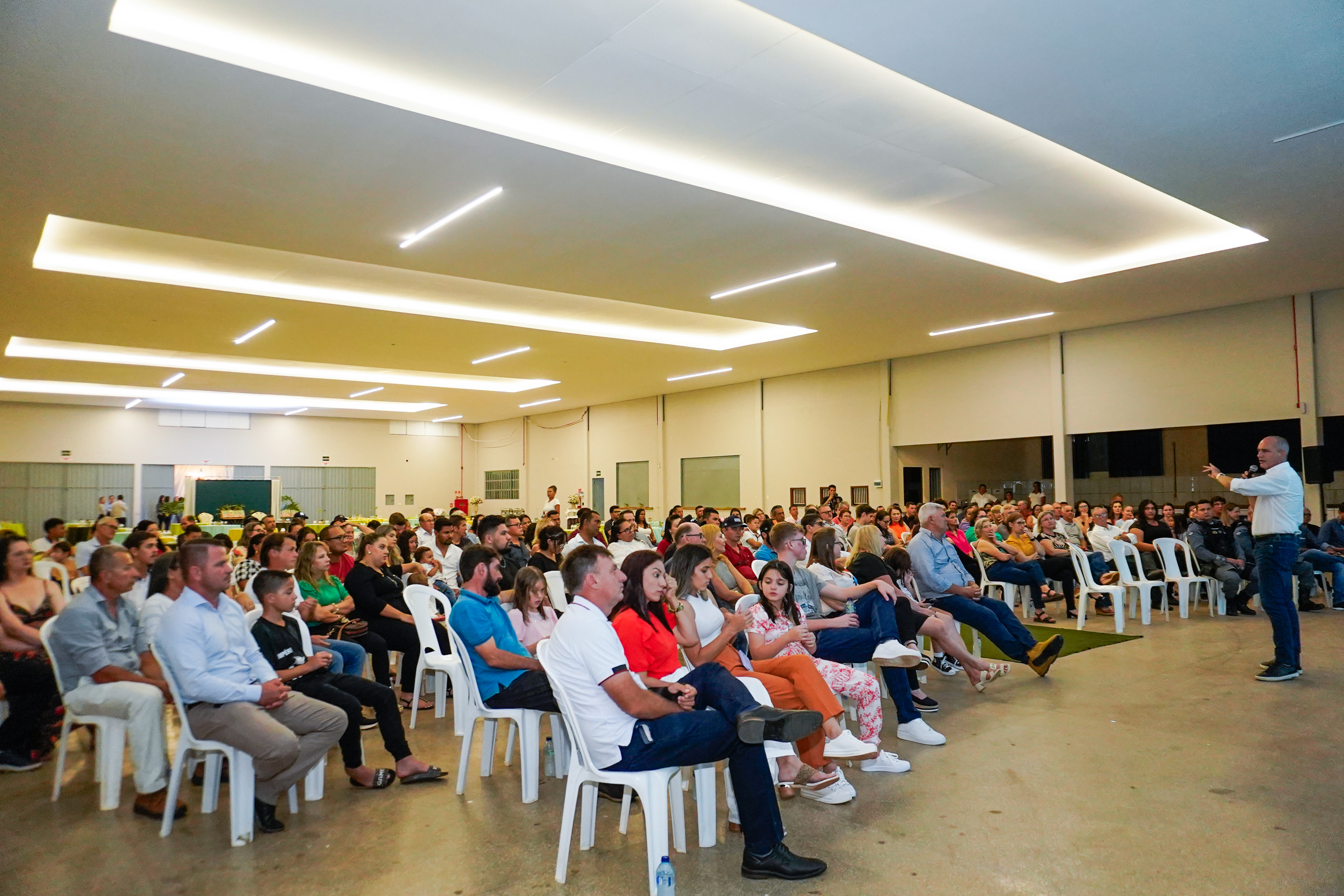 Na noite de 15 de fevereiro, os cooperados de Campos de Júlio, a 566,9 km de Cuiabá, Mato Grosso, participaram da Pré-Assembleia Sicoob Credisul 2024, realizado no salão paroquial da cidade. Sob a liderança de Ivan Capra, presidente do Conselho de Administração, a reunião trouxe uma análise das contas referentes a 2023, assim como a apresentação da proposta para o modelo de distribuição de sobras deste ano.