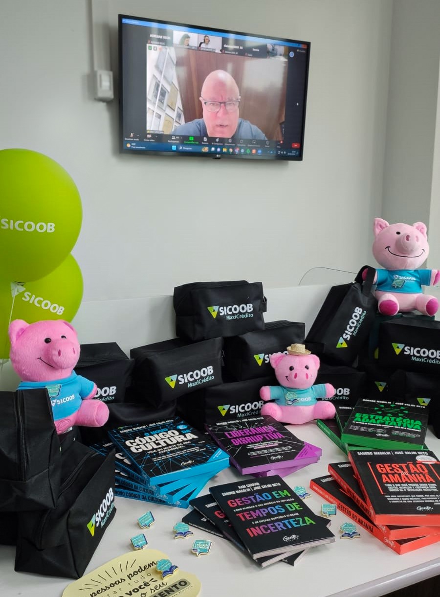 Ao final da aula, as equipes do Centro Administrativo e Postos de Atendimento receberam cinco obras, de autoria do palestrante, para estudo, e estojo com caderneta, lápis e botom. Os títulos são: Gestão em tempo de incerteza: como blindar o seu negócio da inflação e de outras rupturas globais; O Novo Código da Cultura: vida ou morte na era exponencial; Liderança Disruptiva: habilidades e competências transformadoras para liderar na gestão do amanhã; Estratégia adaptativa: o novo tratado do pensamento estratégico e Gestão do Amanhã: tudo o que você precisa saber sobre gestão, inovação e liderança para vencer na 4ª Revolução Industrial.