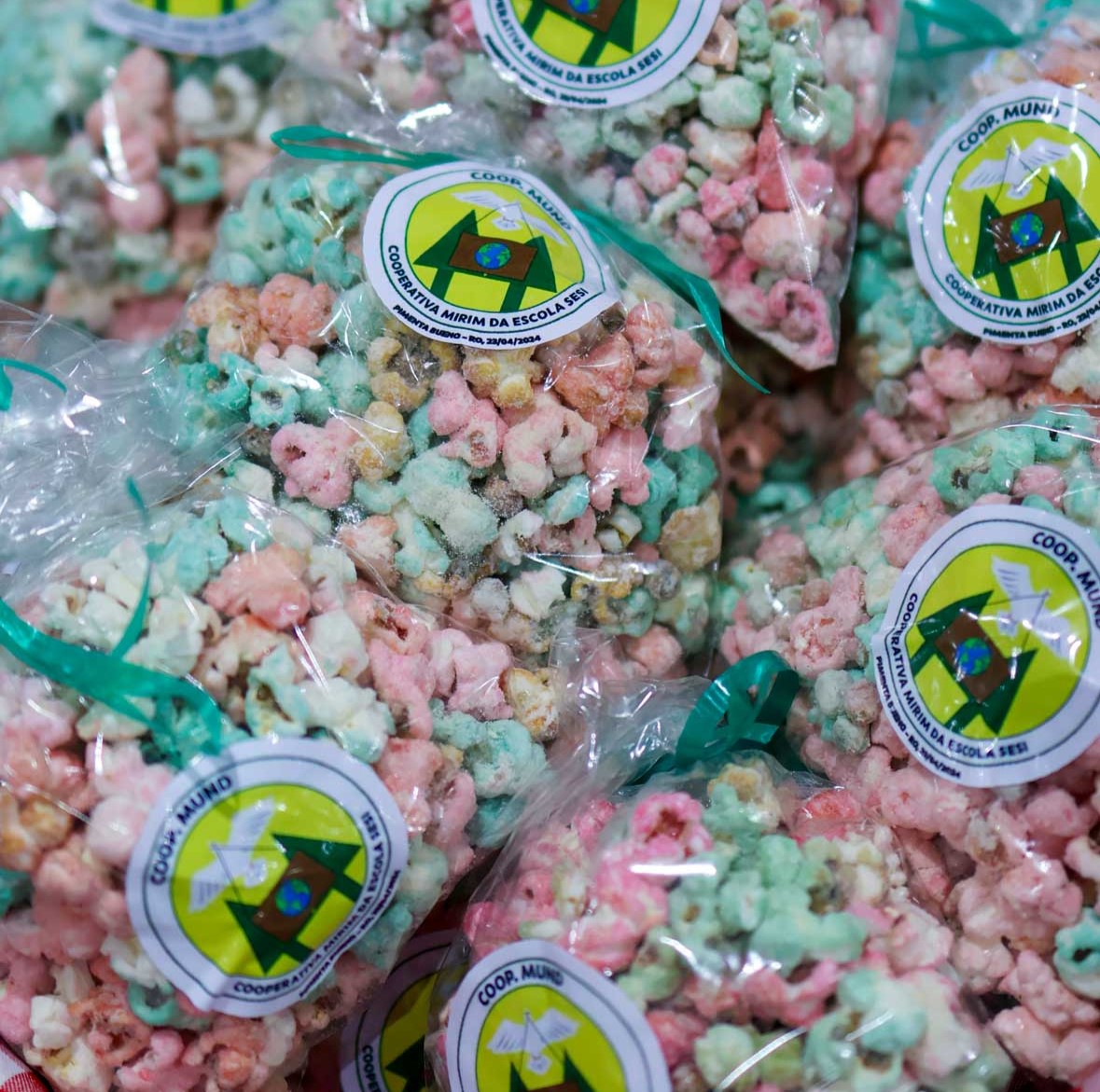 A Coop.Mund é composta por 42 sócios fundadores e dedica-se à produção de pipoca doce gourmet, enquanto a Coop.World é formada por 29 fundadores e concentra na confecção de deliciosos cookies. A produção é realizada nas próprias escolas, durante o contraturno escolar, garantindo que os alunos conciliem o aprendizado com suas obrigações acadêmicas. Todo o processo, desde a compra de ingredientes até a venda dos produtos, é realizado pelos alunos, sob a supervisão de professores orientadores e com o apoio da Sicoob Credip.