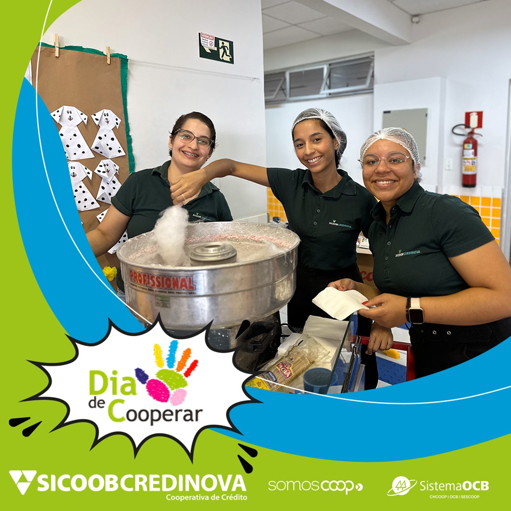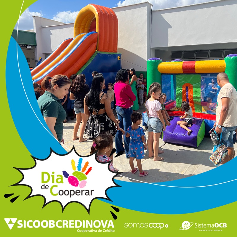 No último sábado, dia 13/07 foi realizado em Nova Serrana o Dia C - Dia de Cooperar. Aproximadamente 250 crianças e adolescentes se reuniram no Cmei Dona Ana Zelina Fonseca, no bairro Itapuã, para uma manhã repleta de lazer, diversão e cooperação. Mais de 20 voluntários do Sicoob Credinova aturam no preparo e na distribuição de cachorro-quente, algodão doce, pipoca e suco.