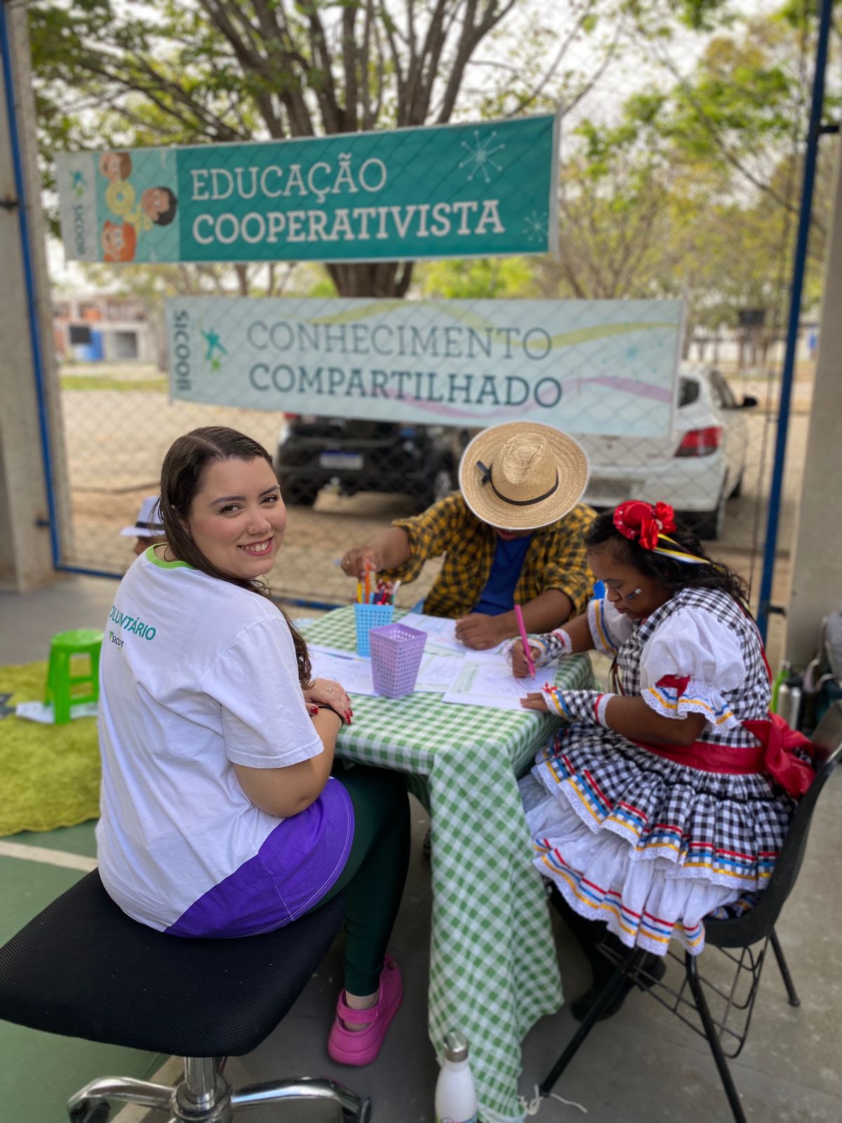 A confraternização de sábado contou com todas as comidas típicas e brincadeiras de uma festa junina, assim como jogos e quadrilha. O Sicoob Fluminense levou aos participantes seu jogo “Caça-finanças” e desenhos e pinturas sobre educação financeira.