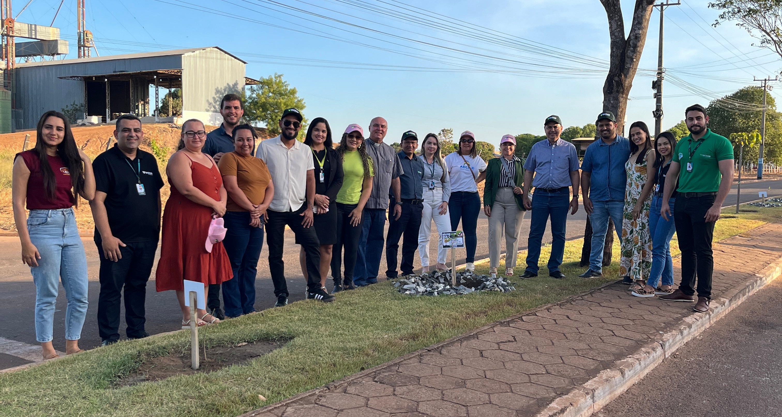 Durante o plantio nós tivemos a presença de algumas autoridades do município, como a presidente da Associação Comercial, Maria Cecília, a vice-presidente Elane, a representante do Sindicato Rural, Peronete, o secretário de Meio Ambiente, Maxwell, o padre Valdeir, além de nossa equipe do Sicoob Tocantins: o Presidente Gilberto Moraes, o Diretor Administrativo Silvan Celestino, o Gerente Regional Yuri Menezes, o Gerente da Agência Marcos Vinícius e sua equipe, e a Gerente da Agência de Cristalândia, Gislâine.