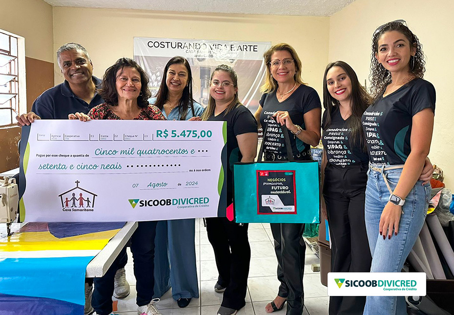 Nesta quarta-feira (07) o Sicoob Divicred realizou uma doação de dinheiro para a Casa Samaritana, em Divinópolis-MG. O recurso foi arrecadado na festa junina solidária da cooperativa.
