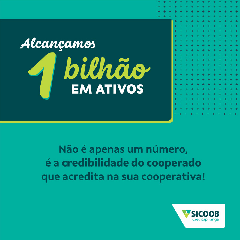 Com uma atuação cada vez mais próxima de seus cooperados e da sociedade, o Sicoob Creditapiranga, primeira instituição financeira cooperativa do Estado de Santa Catarina, alcançou após o fechamento do mês de julho, a marca de R$ 1 bilhão em ativos. Esse é um importante indicador que trata do conjunto de recursos financeiros que são administrados pela instituição.