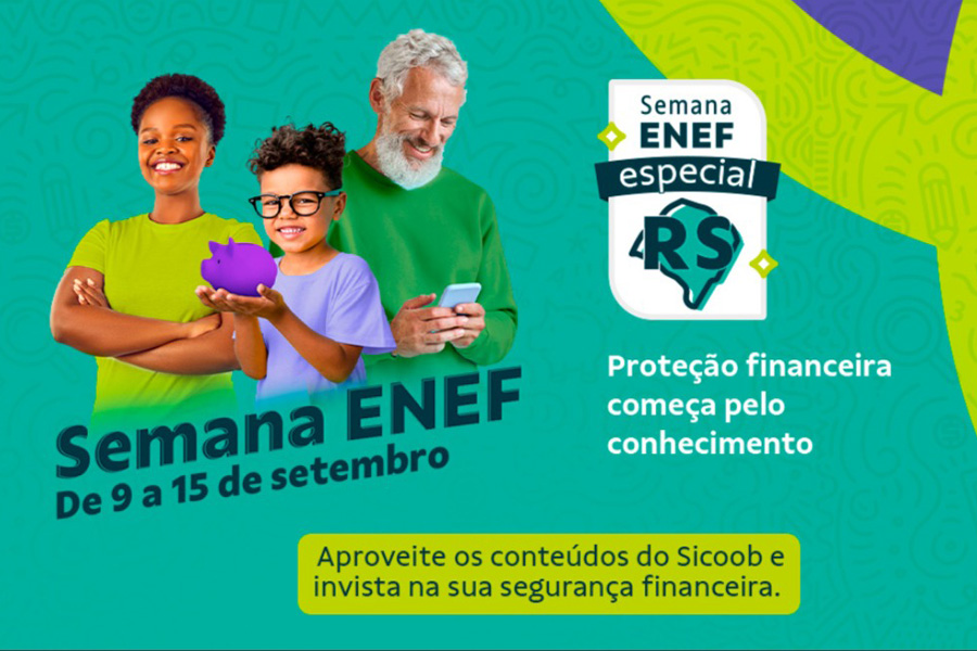O Sicoob participará ativamente da edição especial da Semana Nacional de Educação Financeira (Semana Enef) no Rio Grande do Sul, que ocorre de 9 a 15 de setembro de 2024. A edição extra tem como tema "Proteção Financeira – Investir em educação financeira é investir na sua segurança", que busca reforçar a importância da educação financeira em momentos de adversidade.