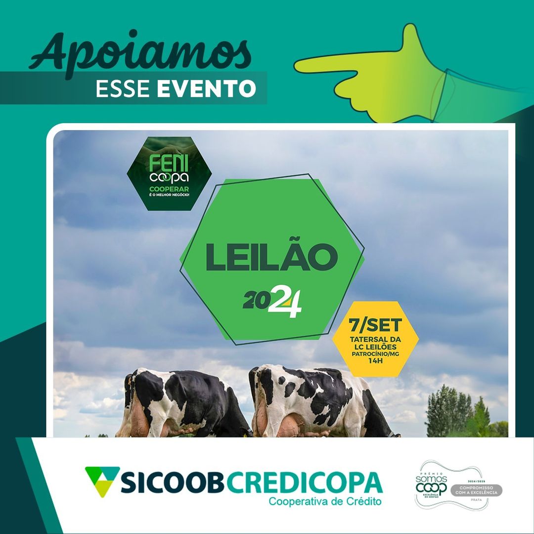 O Sicoob Credicopa é patrocinador da Fenicoopa 2024 e apoiamos o LEILÃO DE ELITE, que acontecerá no dia 07/09/2024, a partir das 14h na LC LEILÕES em Patrocínio.