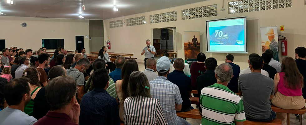 O presidente Wolni José Walter, destacou a importância da parte humana na cooperativa, compartilhando um pouco da história e ressaltando o papel crucial dos produtores rurais nessa trajetória. O diretor de Negócios, André Bada Ronconi, conduziu a apresentação, abordando temas como investimentos, crédito rural e os produtos e benefícios disponíveis para os cooperados.