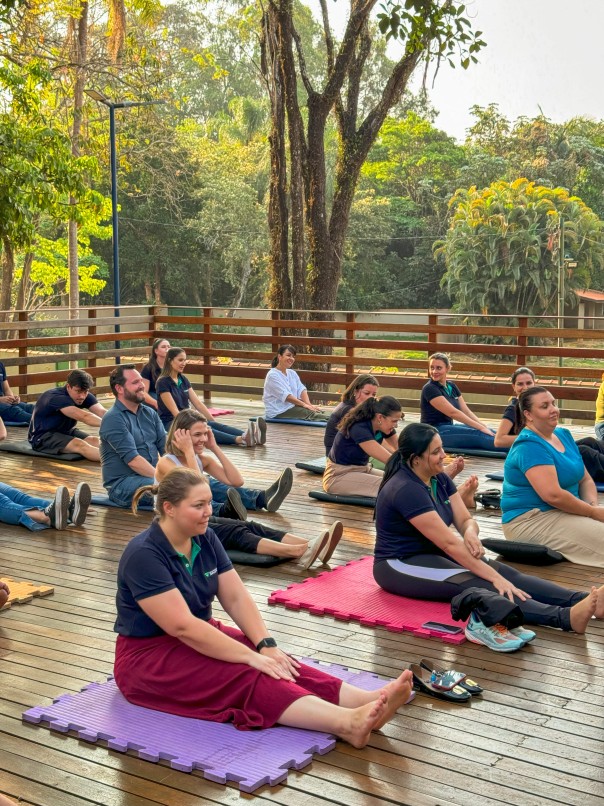 Sob a orientação do Terapeuta Sérgio Sacchi, os colaboradores participaram de atividades como alongamentos, meditação e técnicas de respiração, proporcionando uma pausa revigorante em meio à rotina diária!