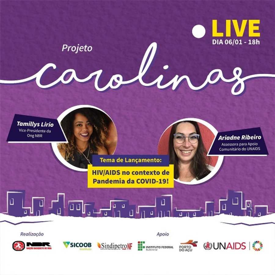 Na quarta-feira, seis de janeiro, haverá a partir das 18h uma live de abertura do Projeto Carolinas, apoiado pelo Sicoob Fluminense. O tema será "HIV/AIDS no contexto de pandemia da Covid-19", com representantes da ONG NBR e da Unaids.