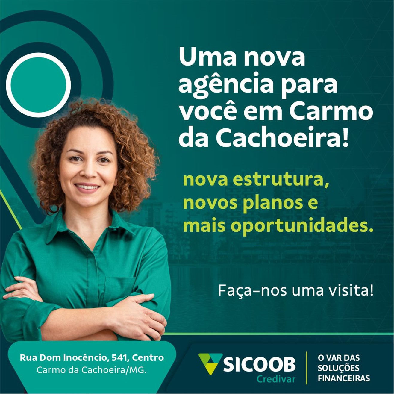 Dando continuidade à sua onda de expansão, o Sicoob Credivar irá inaugurar, na próxima terça-feira, 14 de janeiro, um novo endereço em Carmo da Cachoeira. A nova agência será entregue à população após 28 anos de atividades na cidade, contando com um espaço moderno, acessível e especializado para atender todas as demandas dos produtores rurais, empresários, pessoas físicas e parceiros locais.