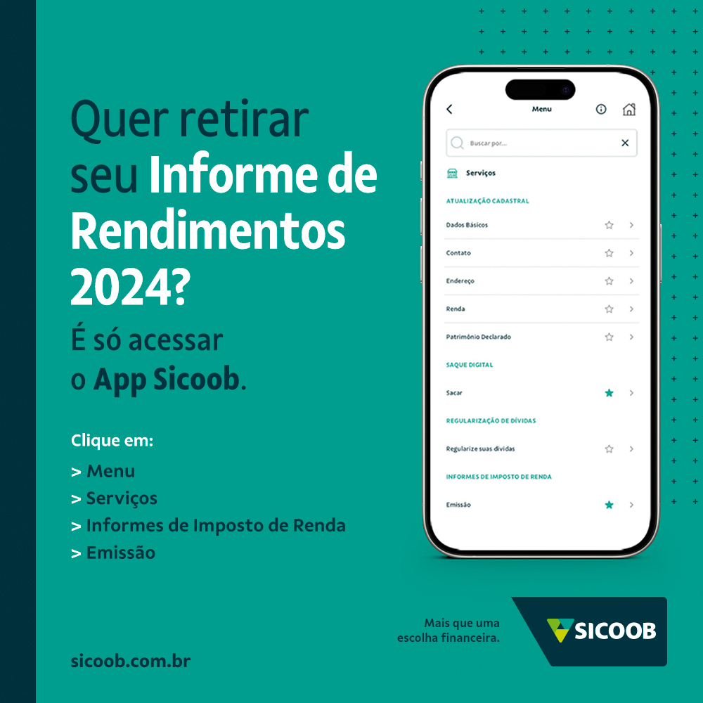 Os informes de rendimentos dos cooperados, tanto pessoas físicas quanto jurídicas, referentes ao ano fiscal de 2024, já estão disponíveis no aplicativo Sicoob!
