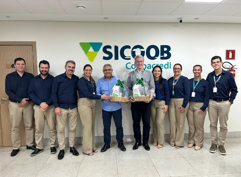 Os representantes foram recebidos na agência matriz, em Patrocínio/MG, pelo presidente do Sicoob Coopacredi, Celio Machado de Castro — que também é conselheiro de Administração da Crediminas —, juntamente com os diretores de Negócios, Givago Paiva, de Gestão de Riscos, Otávio Alves, e Administrativo, Simeão Honório.