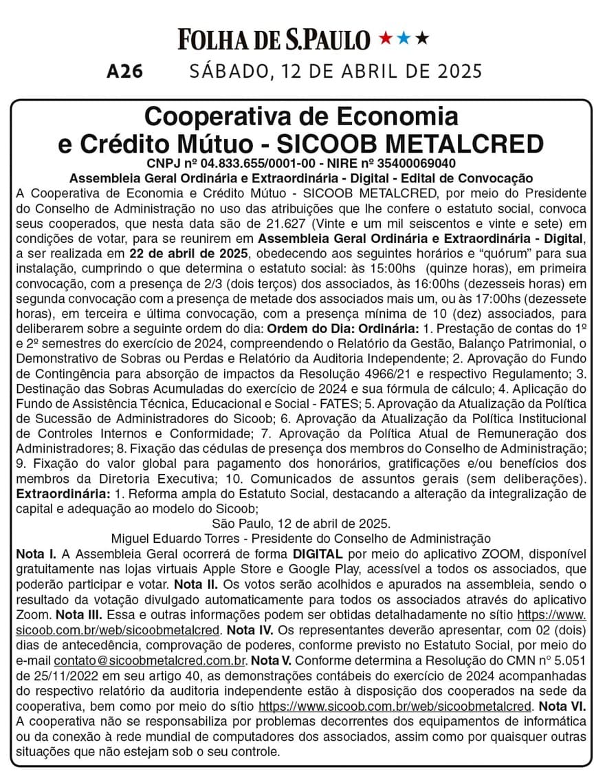 Edital de Convocação Assembleia Geral Ordinária e Extraordinária de 2025