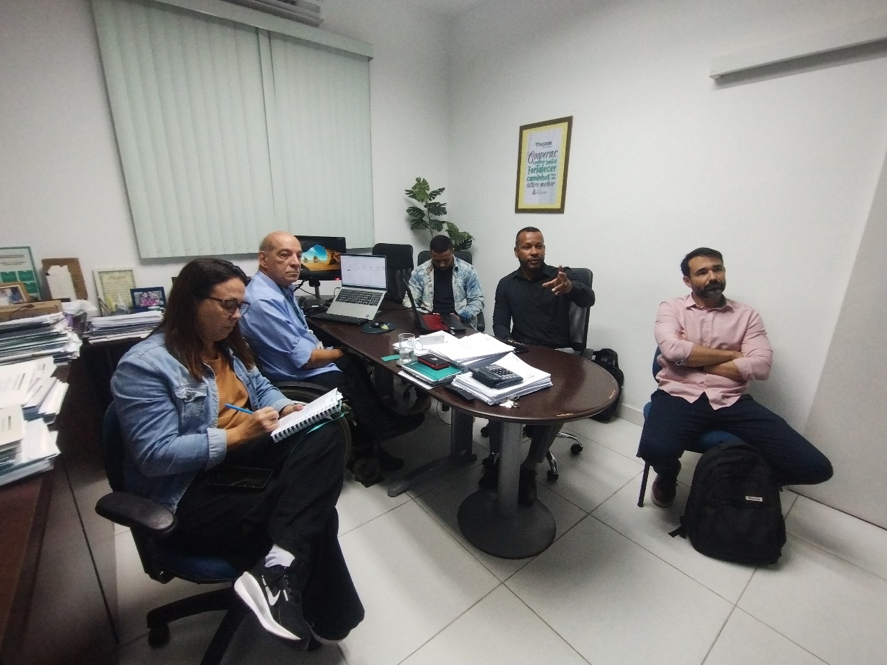 Do encontro participaram ainda a Gerente do setor de Cidadania e Sustentabilidade da cooperativa, Maria Clara Oliveira, e Bruno Braga, Gerente Regional, assim como o Chefe de Gabinete da FMIJ, Raphael Carreira.
