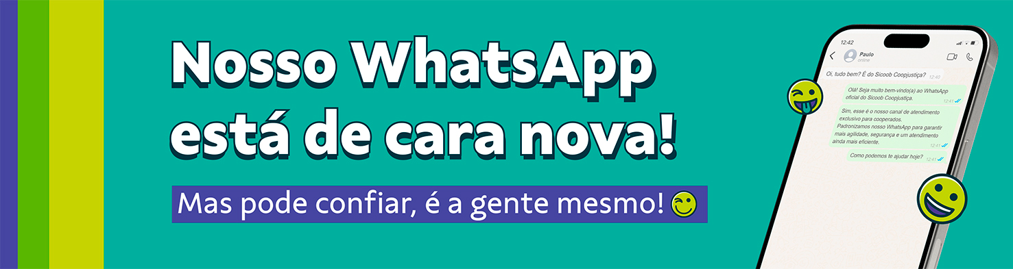 o Sicoob nunca solicita senhas, códigos de segurança, autenticações de dois fatores ou qualquer tipo de alteração cadastral por telefone, por WhatsApp, SMS, e-mail ou redes sociais.