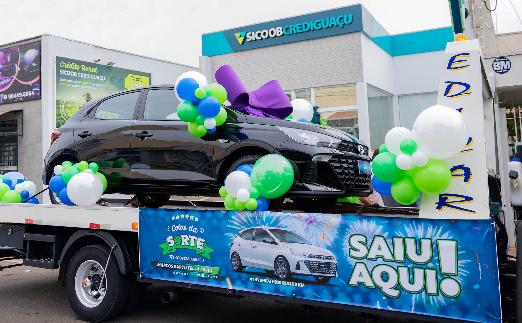 A agência do Sicoob Crediguaçu em Araras foi novamente destaque na Campanha Cotas da Sorte, edição do primeiro semestre de 2025. Após conquistar a moto em abril, a unidade celebrou mais uma vitória com o sorteio de um Hyundai HB20 0 km para o cooperado Marcos Baptistella Filho.
