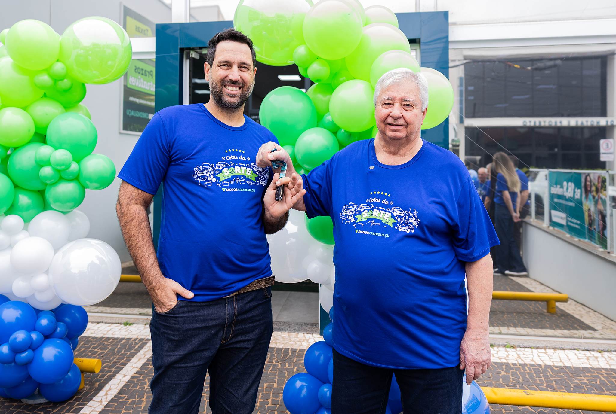 Marcos Baptistella Filho investiu parte de seus recursos em cotas de capital e foi contemplado pela campanha. Ele compartilhou a emoção ao receber a notícia. “O pessoal da agência tentou falar comigo pelo WhatsApp e depois por ligação. No começo achei que fosse brincadeira, mas logo a ficha caiu. O atendimento aqui sempre foi excelente, e só tenho a agradecer”, comemorou o ganhador, que celebrou a conquista ao lado da esposa e da filha.