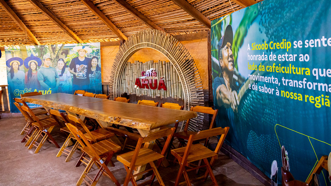 O resultado é um local que combina tradição, sustentabilidade e design funcional. Mesas e cadeiras de madeira, cuidadosamente escolhidas, criam um ambiente rústico, mas confortável, perfeito para receber visitantes, pesquisadores e turistas interessados na história do Café Aruá. É também um espaço de troca cultural, onde moradores e convidados podem compartilhar experiências, aprender sobre produção de café especial e reforçar laços comunitários.