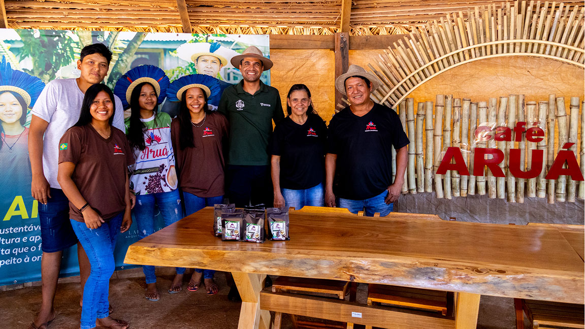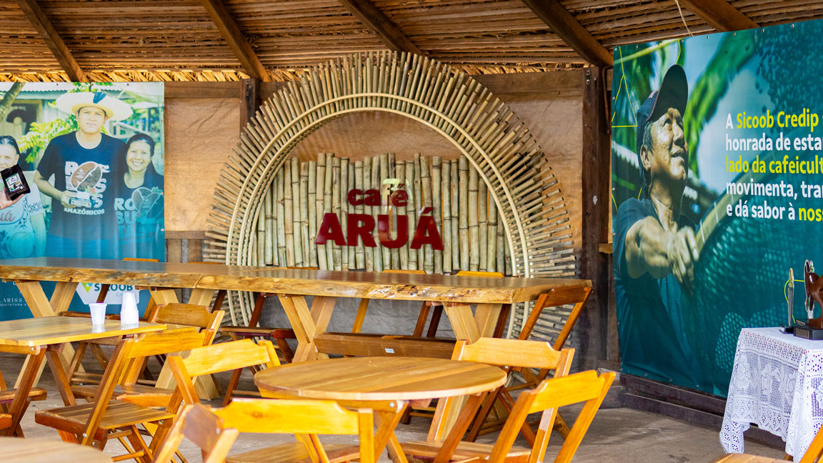 A família Aruá, referência na produção de café especial sustentável na terra indígena Rio Branco, em Alta Floresta do Oeste (RO), ganhou um espaço planejado para receber visitantes e realizar encontros comunitários. O projeto, resultado da parceria com a Sicoob Credip e do trabalho voluntário da arquiteta e urbanista Larissa Paes, trouxe mobiliário e planejamento arquitetônico, transformando um simples chapéu de palha em um ponto de referência na aldeia.