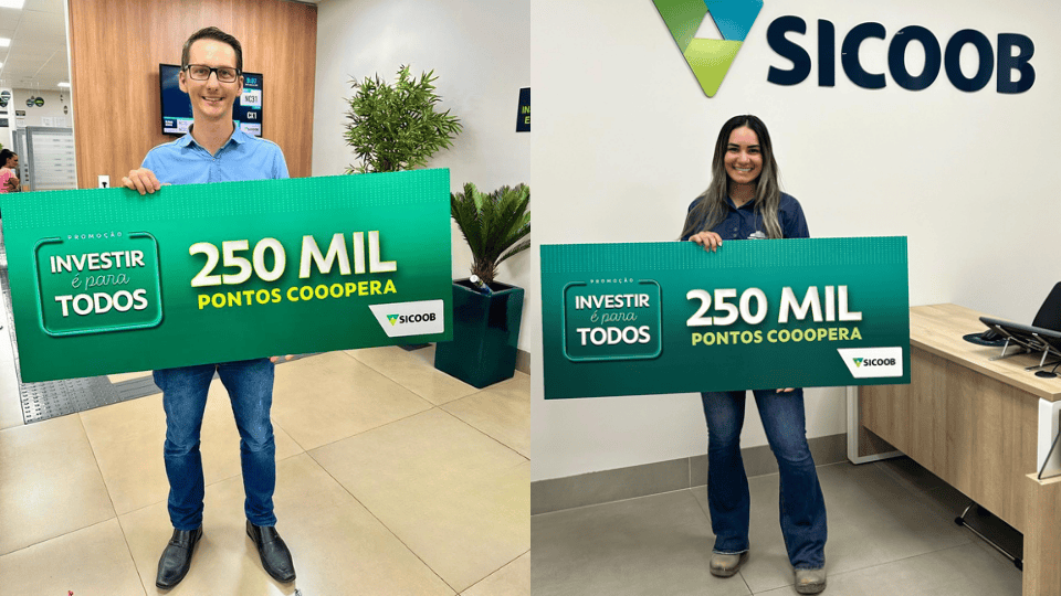 Dois cooperados do Sicoob Integração foram contemplados com 250 mil pontos coopera, por meio da Promoção Investir é para Todos, de abrangência nacional.