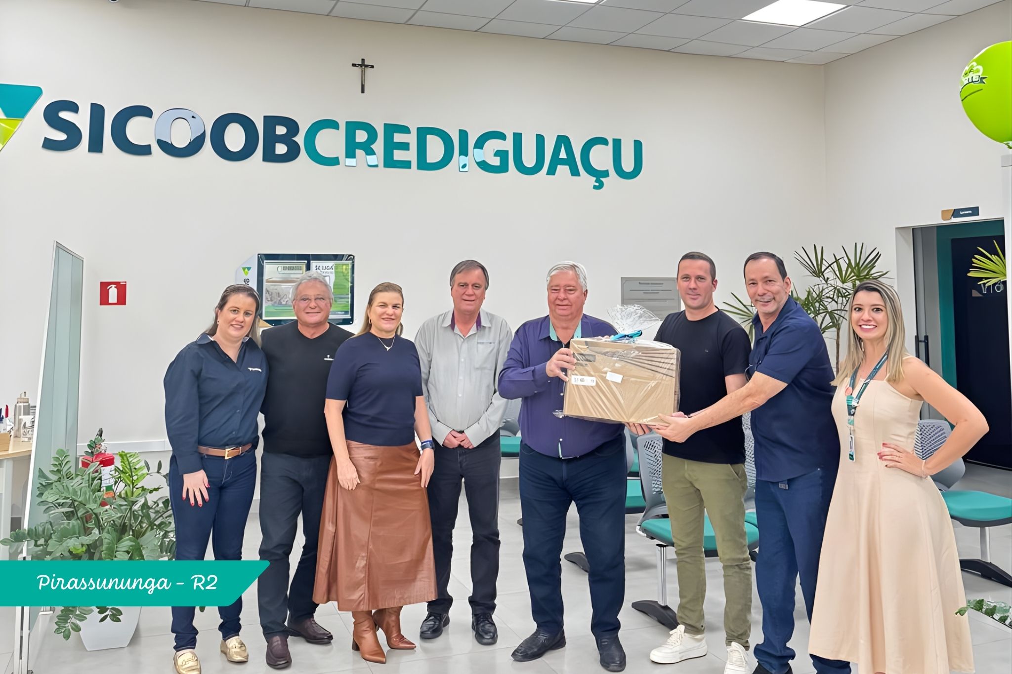 As entregas foram realizadas nas agências pelo Presidente do Conselho de Administração, Antonio Carlos de Mello; pelo Diretor de Negócios, Carlos Bianchi; e por Natália Bertini, Gerente de Produtos e Serviços.