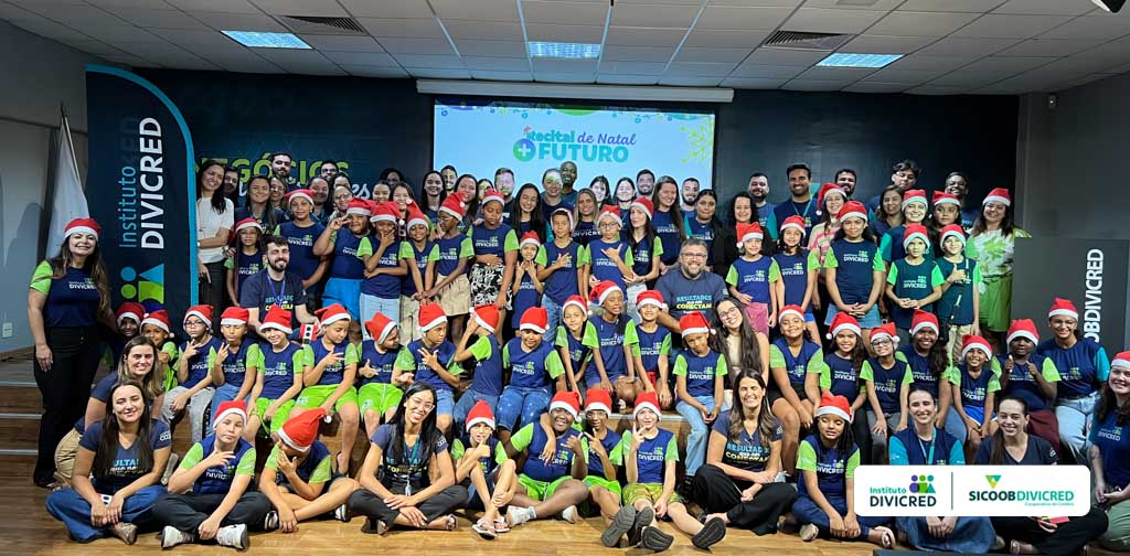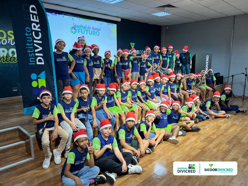 Os alunos do Projeto+Futuro realizaram nesta quinta-feira (04/12) um Recital de Natal para os voluntários do Instituto Divicred. A celebração aconteceu no Auditório do Centro Administrativo do Sicoob Divicred e contou com a presença de 50 alunos e grande parte do quadro de voluntários.