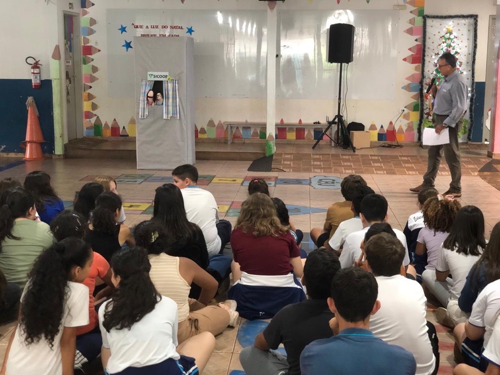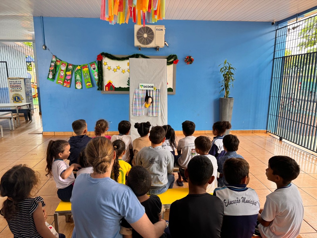 O Sicoob Médio Oeste realizou, no dia 8 de dezembro, mais uma ação do programa Financinhas nas Escolas, iniciativa do Sicoob que, desde 2021, promove educação financeira para crianças em todo o país. A cooperativa inovou ao levar o conteúdo para as escolas de forma lúdica, utilizando fantoches para aproximar os temas da realidade infantil.
