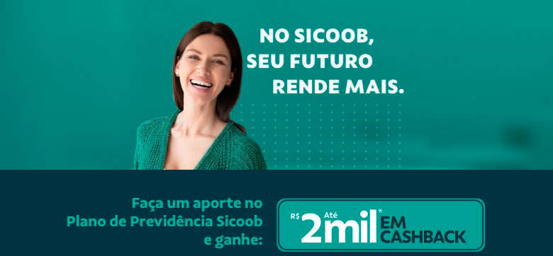 O Sicoob, instituição financeira cooperativa, está com a campanha Sicoob, seu futuro rende mais, que visa estimular o planejamento financeiro de longo prazo por meio de aportes em previdência complementar, oferecendo benefícios adicionais aos cooperados. A iniciativa estará vigente até 31 de dezembro de 2025 e oferece cashback de até R$ 2 mil para quem realizar aportes em planos de previdência do Sicoob.