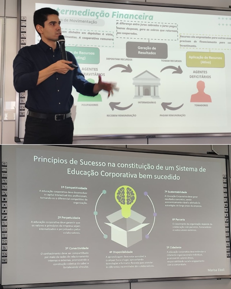 No primeiro dia, os participantes tiveram contato com os principais subsistemas da área de Gestão de Pessoas, como Performance Profissional, Atração e Seleção, Clima Organizacional, Plano de Carreira e Remuneração e Educação Corporativa. Neste último, foi destacada a estruturação dos treinamentos previstos para 2026, que se encontram em fase de validação. Outro ponto de atenção foi o aprimoramento da Intranet com o Conecta Edu, página que reúne informações essenciais sobre educação corporativa para os RHs das cooperativas e demais empregados, contribuindo para a perpetuidade dos valores cooperativistas e para o desenvolvimento contínuo dos profissionais.