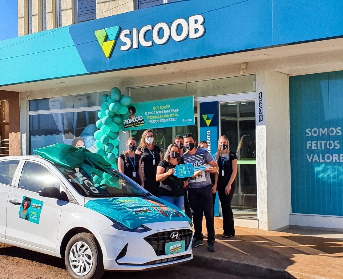 A Pizzaria Nona Júlia, de propriedade de Gustavo Orliczek Queiroz e Neide Maria Orliczek Queiroz, associada (PJ) ao Sicoob Oestecredi, foi contemplada com um automóvel HB20 zero quilômetro na campanha Sorte Assim Só No Sicoob. Eles receberam a notícia por intermédio da gerente da agência de Seberi (RS), Aline Paini Vivian.