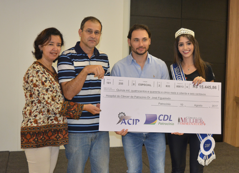 A Miss Comerciária Camila foi quem entregou o cheque simbólico ao presidente do HC Thiago Miranda Oliveira. Todos os presentes ressaltaram a importância do evento para a eleição da mais bela colaboradora do comércio patrocinense e na arrecadação do recurso para o hospital.