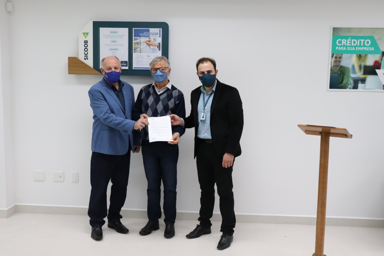Foto: Edemar Fronchetti, presidente do Sicoob São Miguel, João Cecagno, presidente do hospital Nossa Senhora Aparecida e Eliseu da Silva, gerente do Sicoob em Paraí.