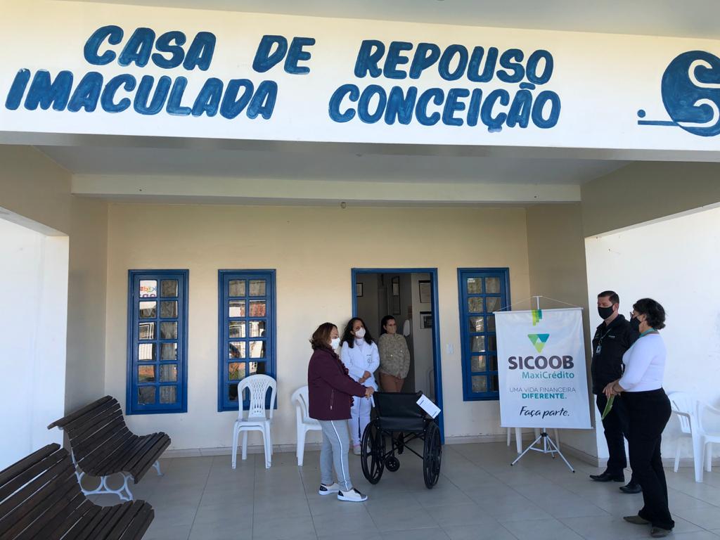 “O Sicoob MaxiCrédito já nos ajuda há algum tempo e agora nos doaram uma cadeira de rodas que precisamos muito, já que temos 13 cadeirantes na Casa e ainda quando necessário emprestamos para pessoas necessitadas que precisam por um tempo e não podem comprar. Então, é com muita alegria e gratidão que recebemos estás doações. Muito obrigada ao Sicoob”, agradece Ivone.