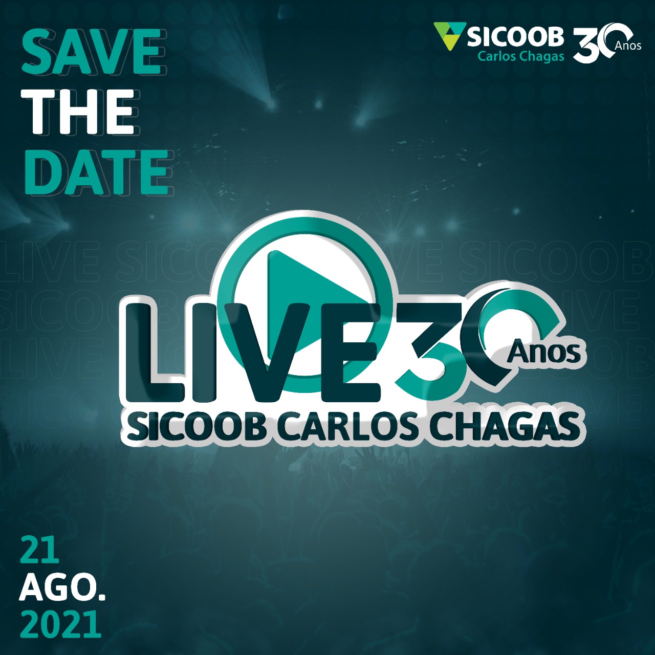 Agendem essa data. Você não pode perder. Participe da Live em comemoração aos 30 anos do Sicoob Carlos Chagas.