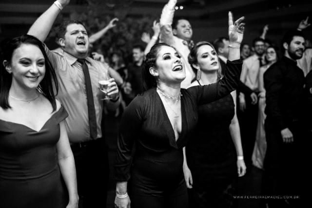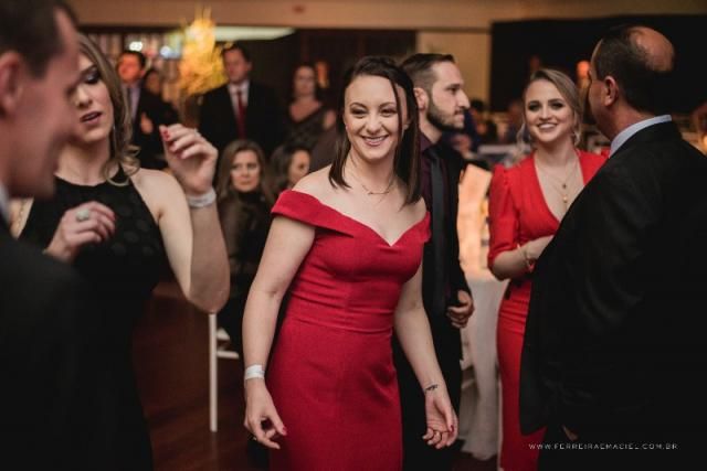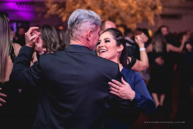 Após a cerimônia, os presentes prestigiaram um jantar especial e a festa foi embalada por uma banda, animando todos os presentes e fazendo a noite ser inesquecível.