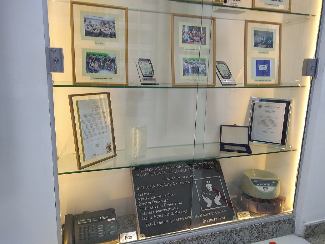 Desde o dia 16 de julho, quando o 23.º aniversário do Sicoob Fluminense foi comemorado, uma área na entrada da sede da cooperativa em Campos dos Goytacazes vem chamando a atenção do público – trata-se do Espaço Memória, com várias peças do arquivo que contam uma significativa parte da história da instituição.