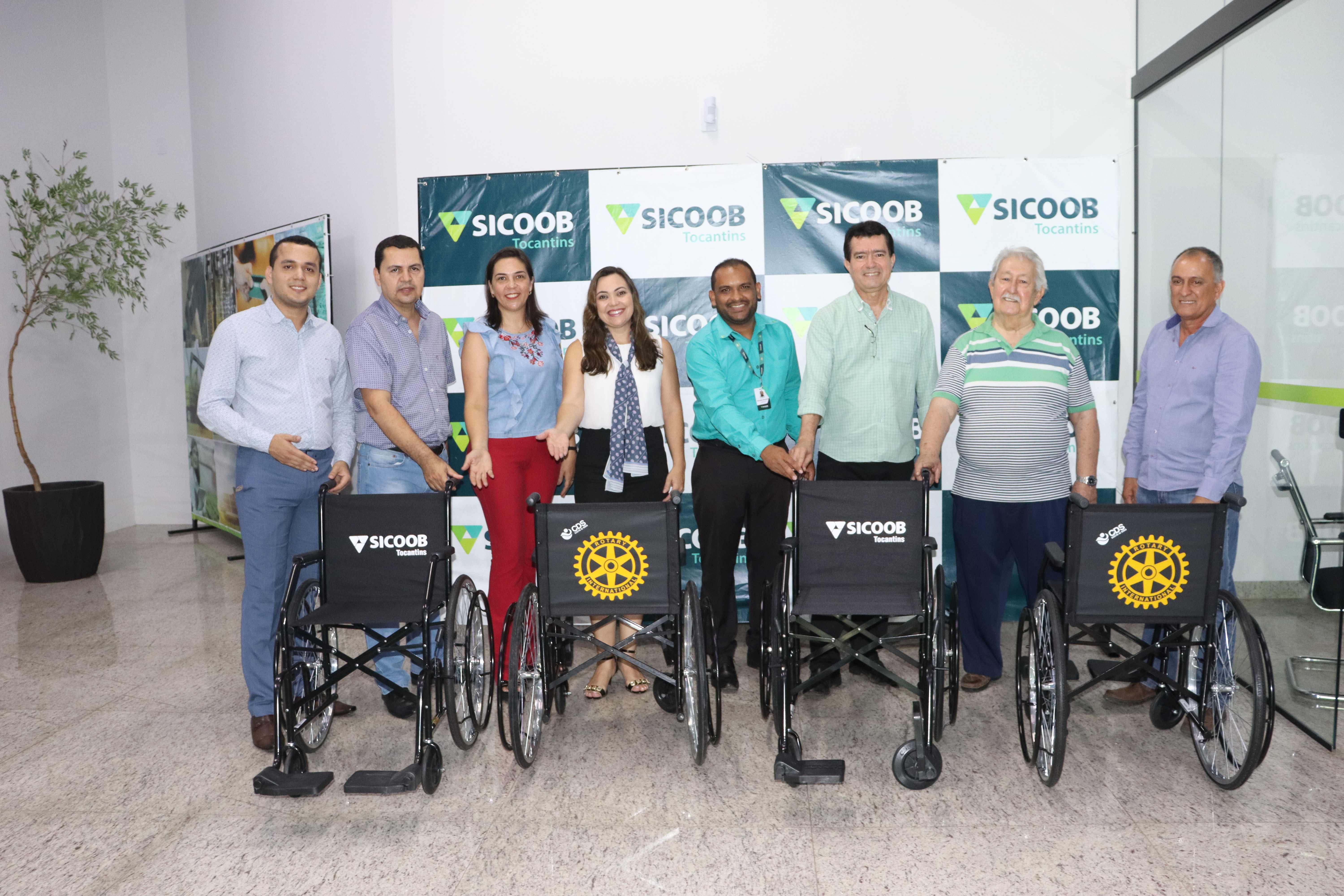 Reforçando o 7º princípio do cooperativismo, que é o interesse pela comunidade, o Sicoob Tocantins doou ao Rotary Club de Paraíso dez cadeiras de rodas. A entrega foi realizada nesta quarta-feira,01, na agência sede do Sicoob Tocantins, em Paraíso do Tocantins.
