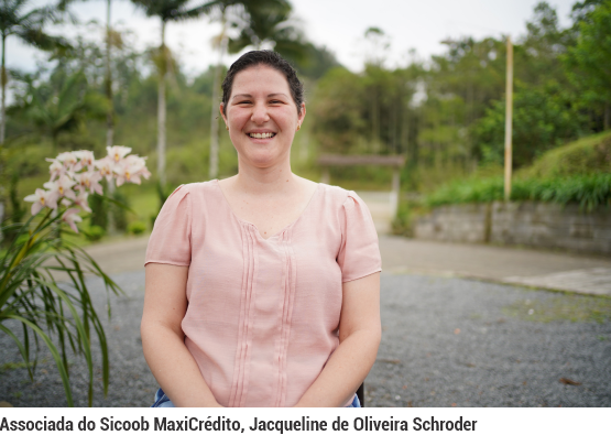 O seguro contratado por Jacqueline é o Seguro Vida Mulher Sicoob, disponível para mulheres de 16 a 64 anos