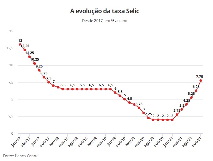 Banco Central aumenta taxa de juros para 7,75% ao ano, maior patamar desde 2017
