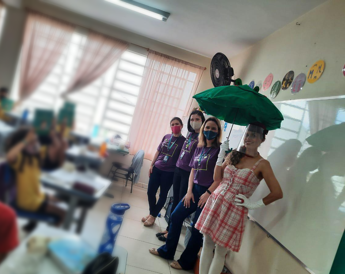 Em escolas, foram 27 encontros realizados. E a criatividade rolou solta para levar uma atividade diferenciada e prender a atenção dos estudantes. Em Parobé, valeu até usar fantasia para contar a história do Caio Achou uma Moedinha.